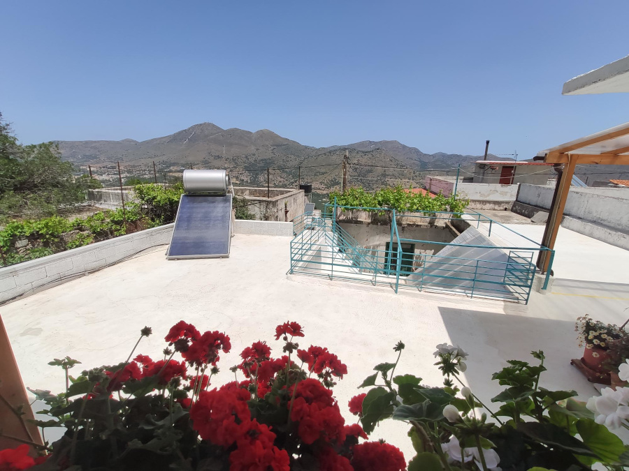 Maison récemment rénovée de deux étages, 2-3 chambres avec jardin et plusieurs terrasses sur le toit, située dans le joli village de Vrises, près de Neapolis et Agios Nikolaos, Crète.