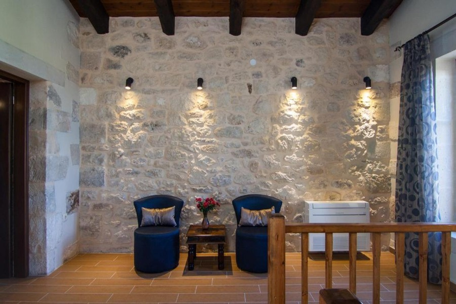 L’espace intérieur et extérieur est caractérisé par les murs en pierre très bien entretenus et les détails en pierre.
